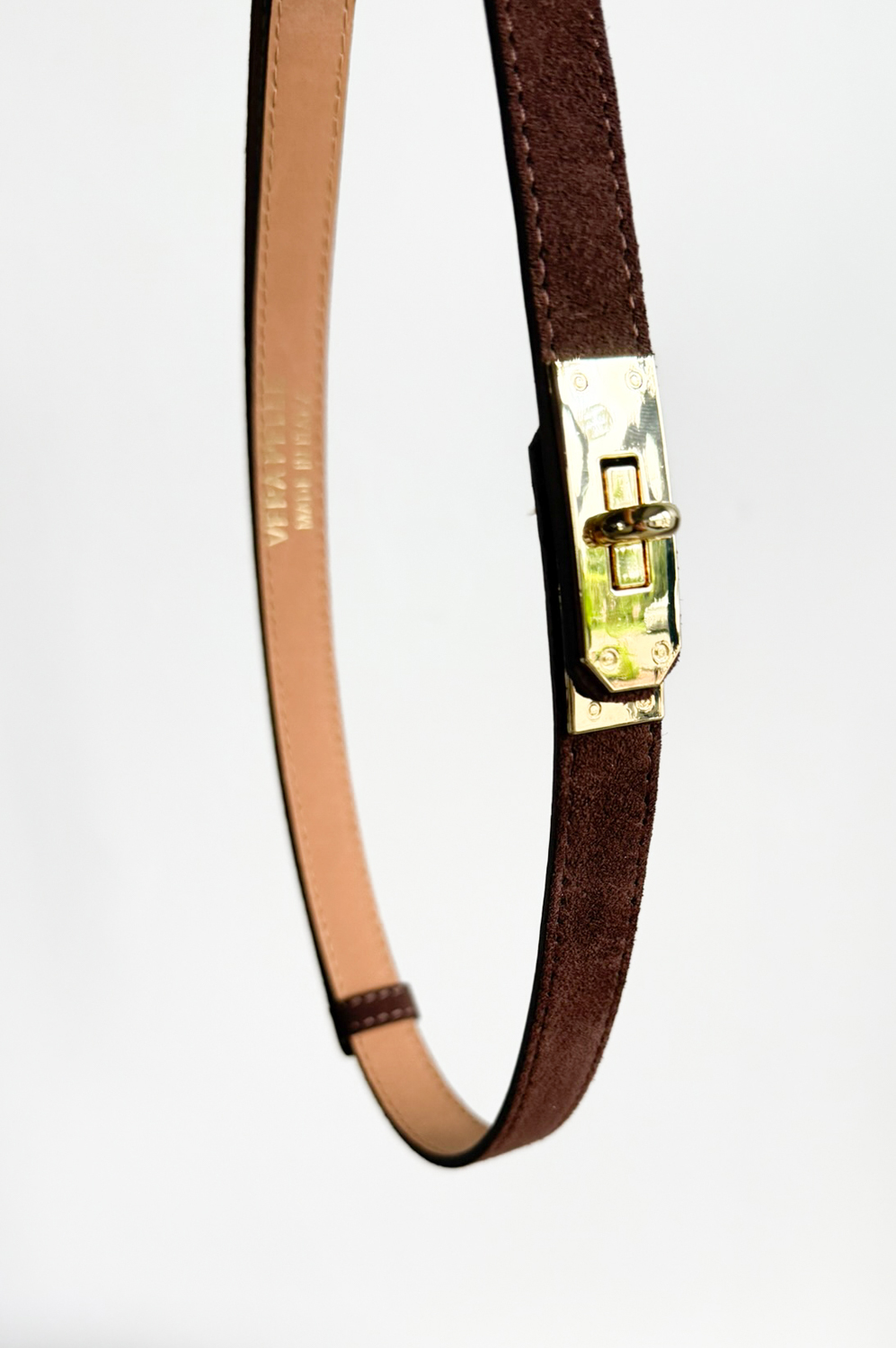 Pasek GOLD ZAMSZ REGULOWANY ZE SKÓRY mleczna czekolada119.00 zł Najniższa cena towaru, która obowiązywała w okresie 30 dni przed zastosowaniem obniżki: 119.00 zł Opis Pasek wykonany ze skóry. Bardzo dobra jakość. Regulowany do 90cm w obwodzie. Pasek jest przepiękny idealny do sukienek i delikatnych eleganckich stylizacji. Zwrot ZWROTY