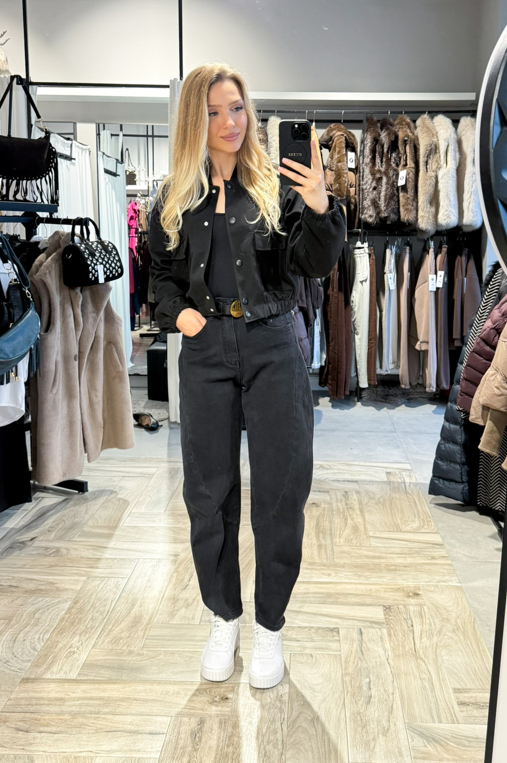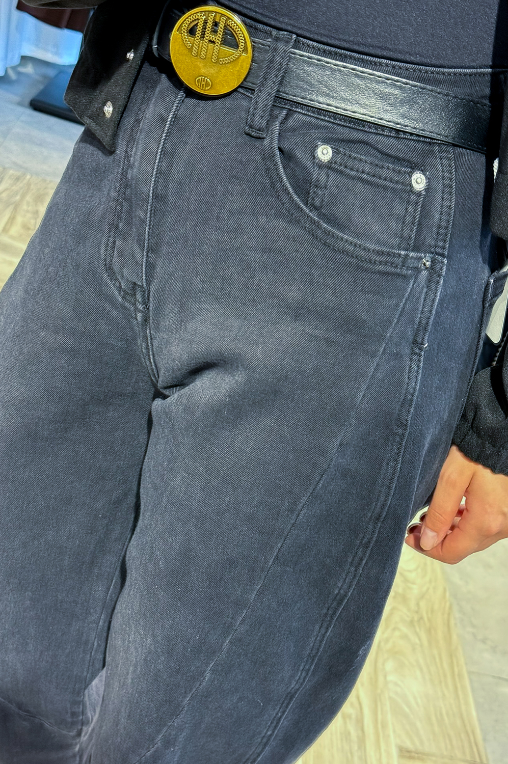 Spodnie  balonowe, łądnie modelujące figurę  i,wykonane z miękkiego superelastycznego jeansu. Wyższe w stanie.