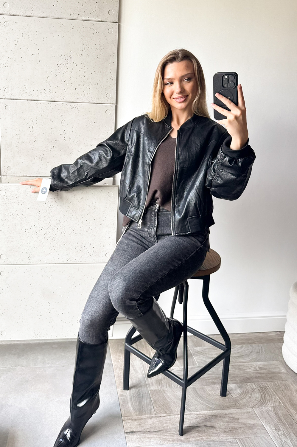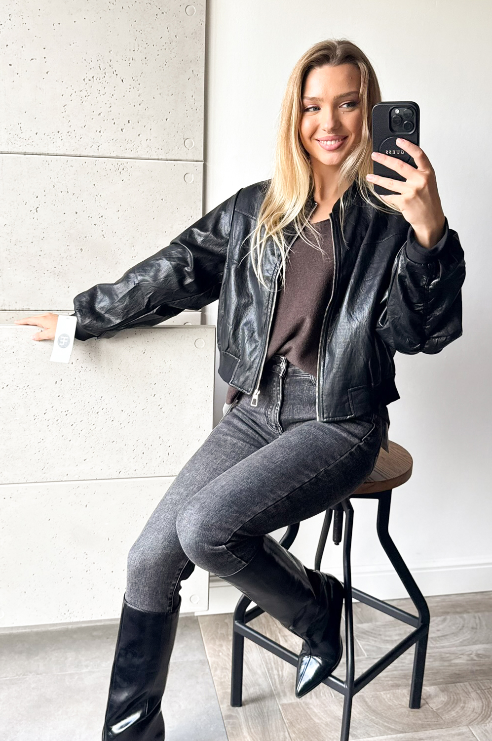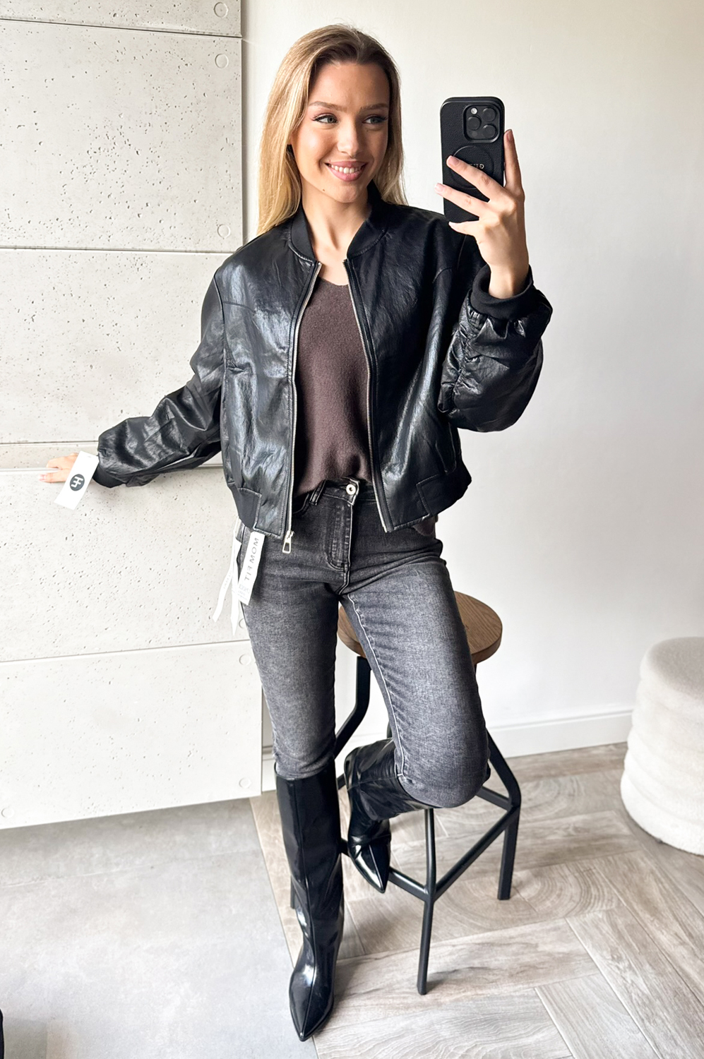 Lekka i elegancka, oryginalna kurtka typu bomberka, wykonana z miękkiej cienkiej skóry ekologicznej, która subtelnie układa się na sylwetce. Skórka wygląda jak naturalna. Materiał jest przyjemny w dotyku, dzięki czemu zapewnia wygodę w codziennym noszeniu. Klasyczny krój wzbogacony o delikatne detale – takie jak oryginalny kołnierz, starannie wszyte przeszycia czy minimalistyczne zapięcie – sprawia, że kurtka pasuje zarówno do casualowych, jak i bardziej eleganckich stylizacji. Kurtka ma podszewkę. Jej topowy krój podkreśla atuty sylwetki i sprawia, że świetnie wpisuje się w najnowsze trendy. Lekka, a jednocześnie wygodna.