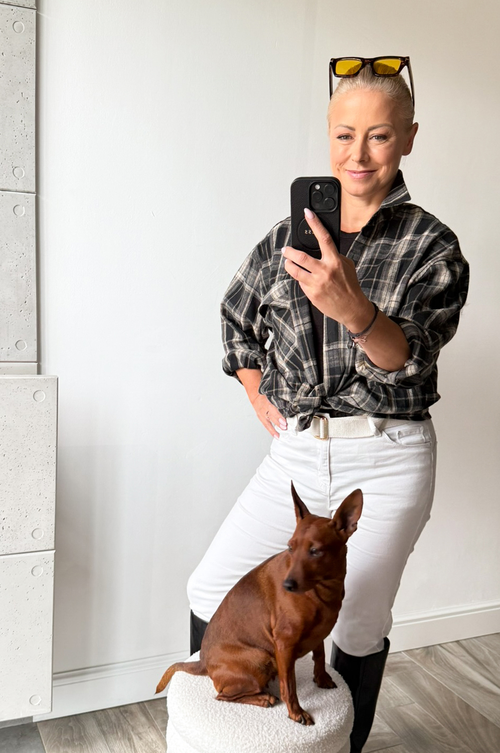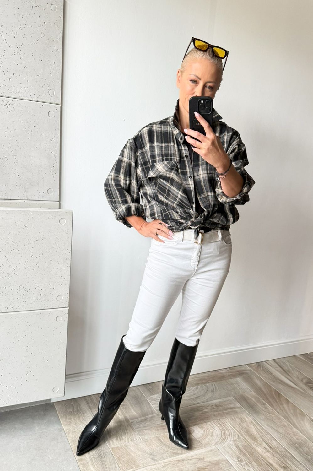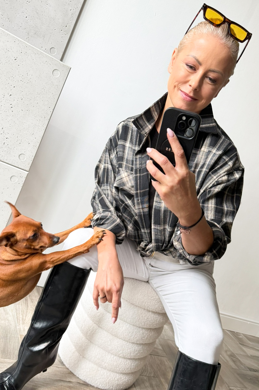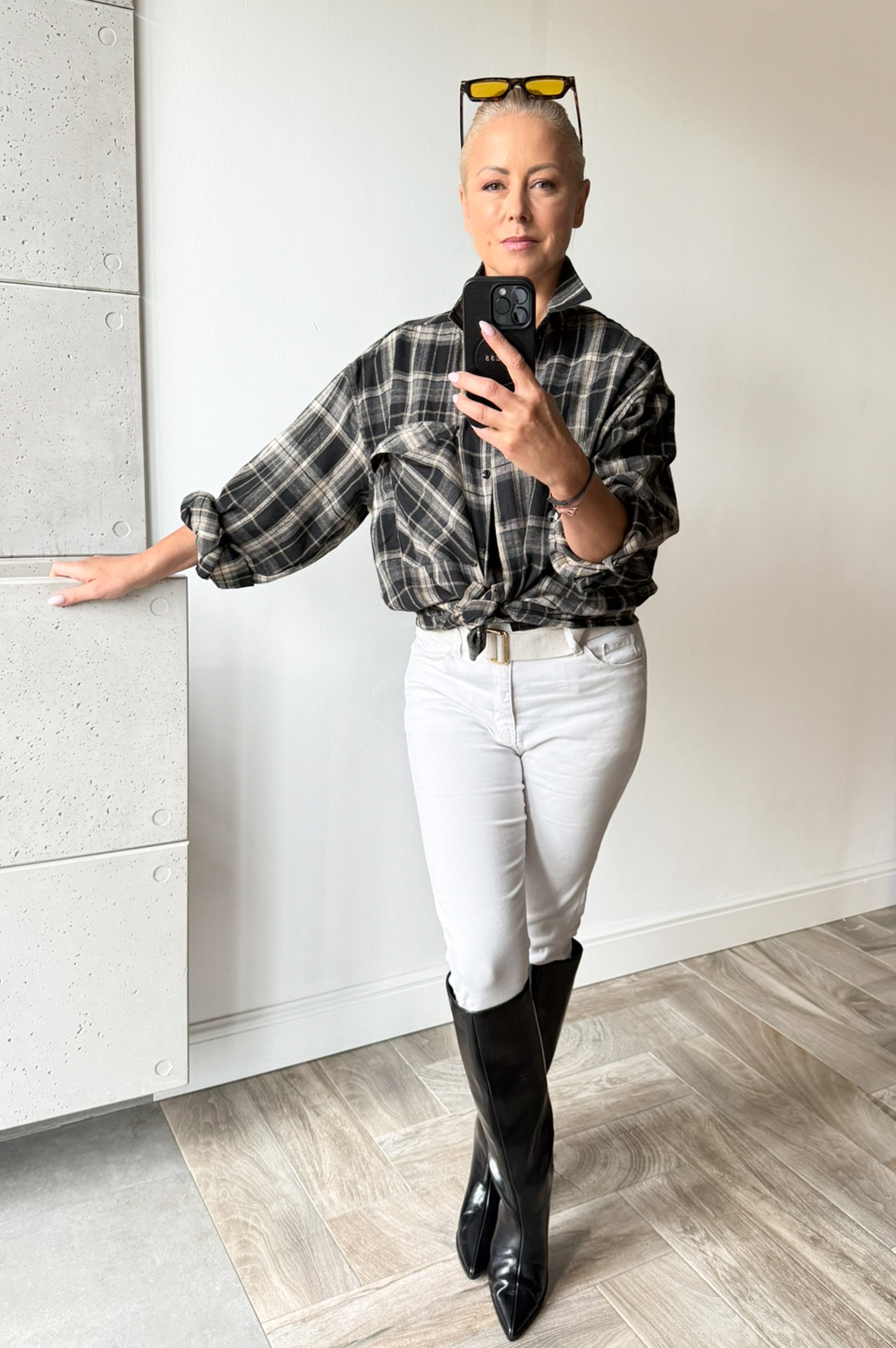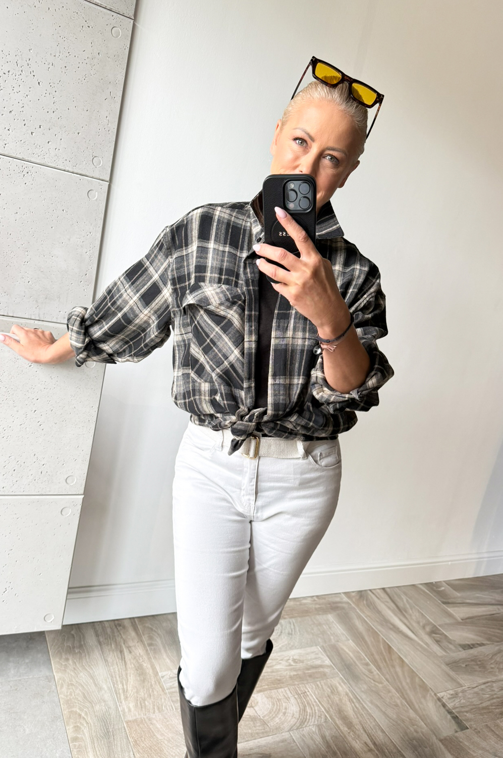 Bluzka koszulowa KRATA czarno beżowa