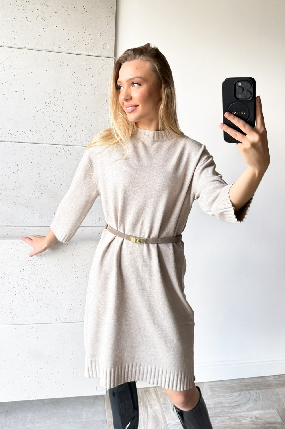 Sukienka SWETERKOWA OWAL BEŻ