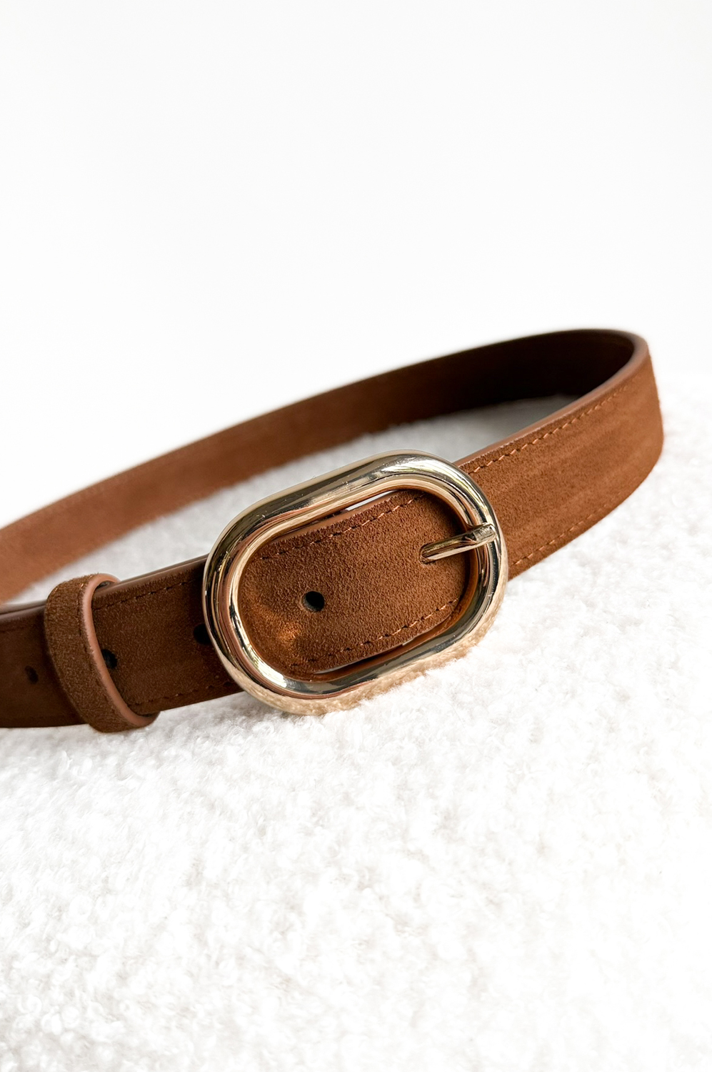 Pasek OVAL GOLD - SKÓRA ZAMSZ camel