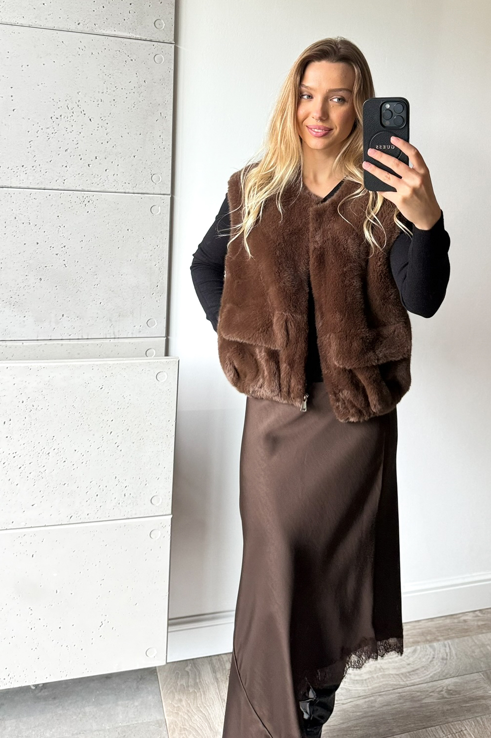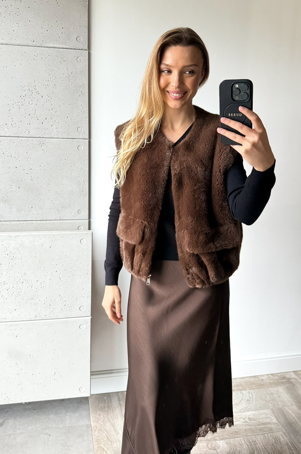 Kamizelka KAMIZELKA NA SKÓRCE MLECZNA CZEKOLADA299.00 zł Najniższa cena towaru, która obowiązywała w okresie 30 dni przed zastosowaniem obniżki: 299.00 zł Opis Zwrot ZWROTY