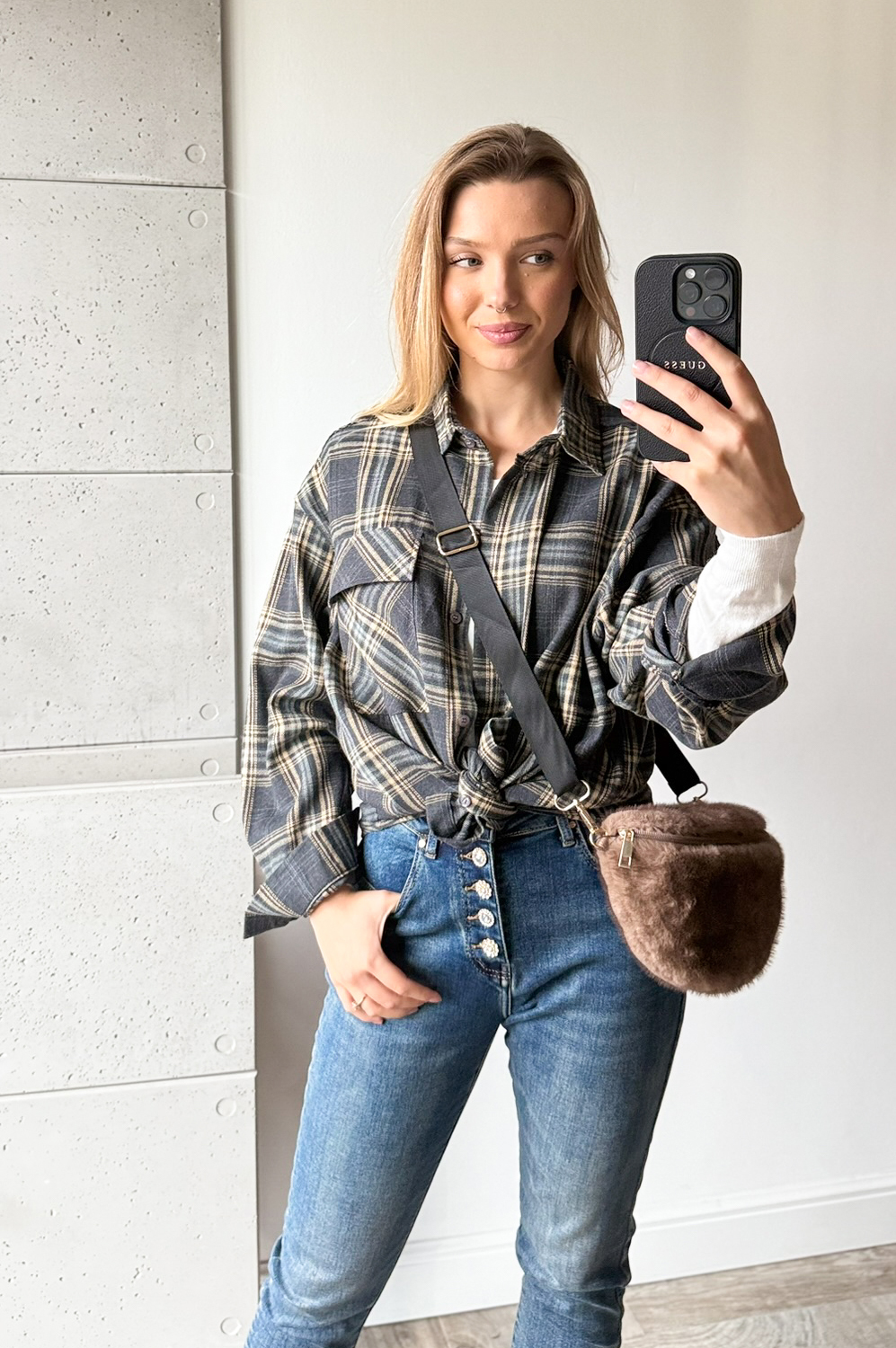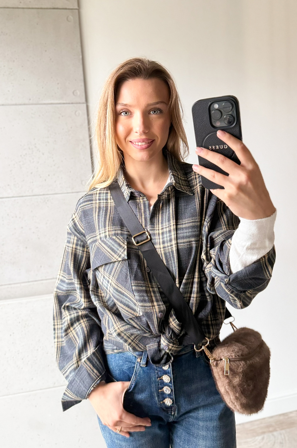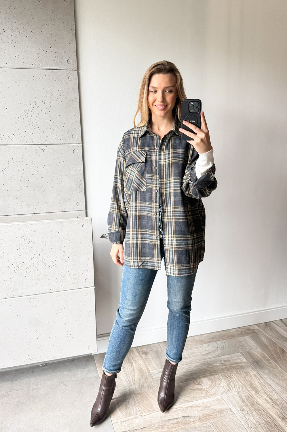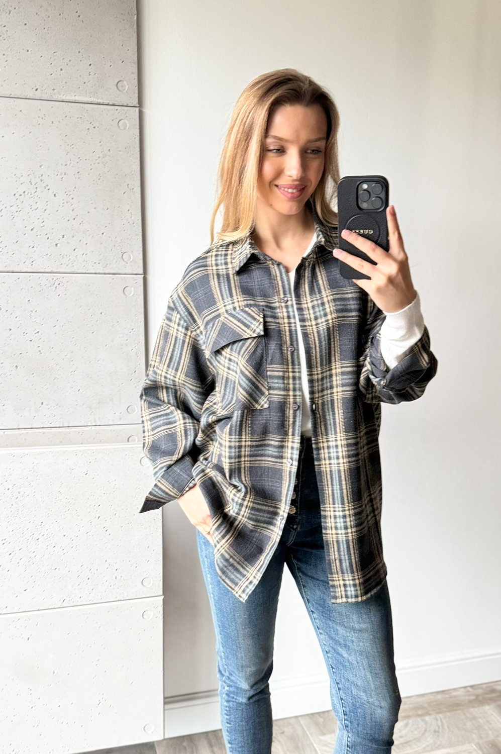 Bluzka koszulowa koszulowa KRATA granat179.00 zł Najniższa cena towaru, która obowiązywała w okresie 30 dni przed zastosowaniem obniżki: 179.00 zł Opis Piękna i elegancka koszula w kratę,oversizowa idealnie pasująca do wielu stylizacji sportowych . SKŁAD : 100%bawełna