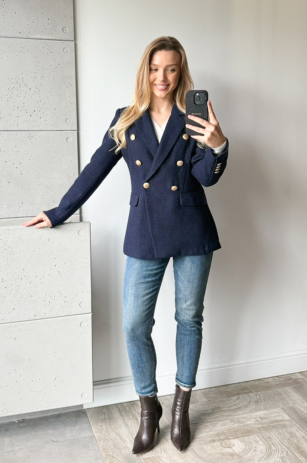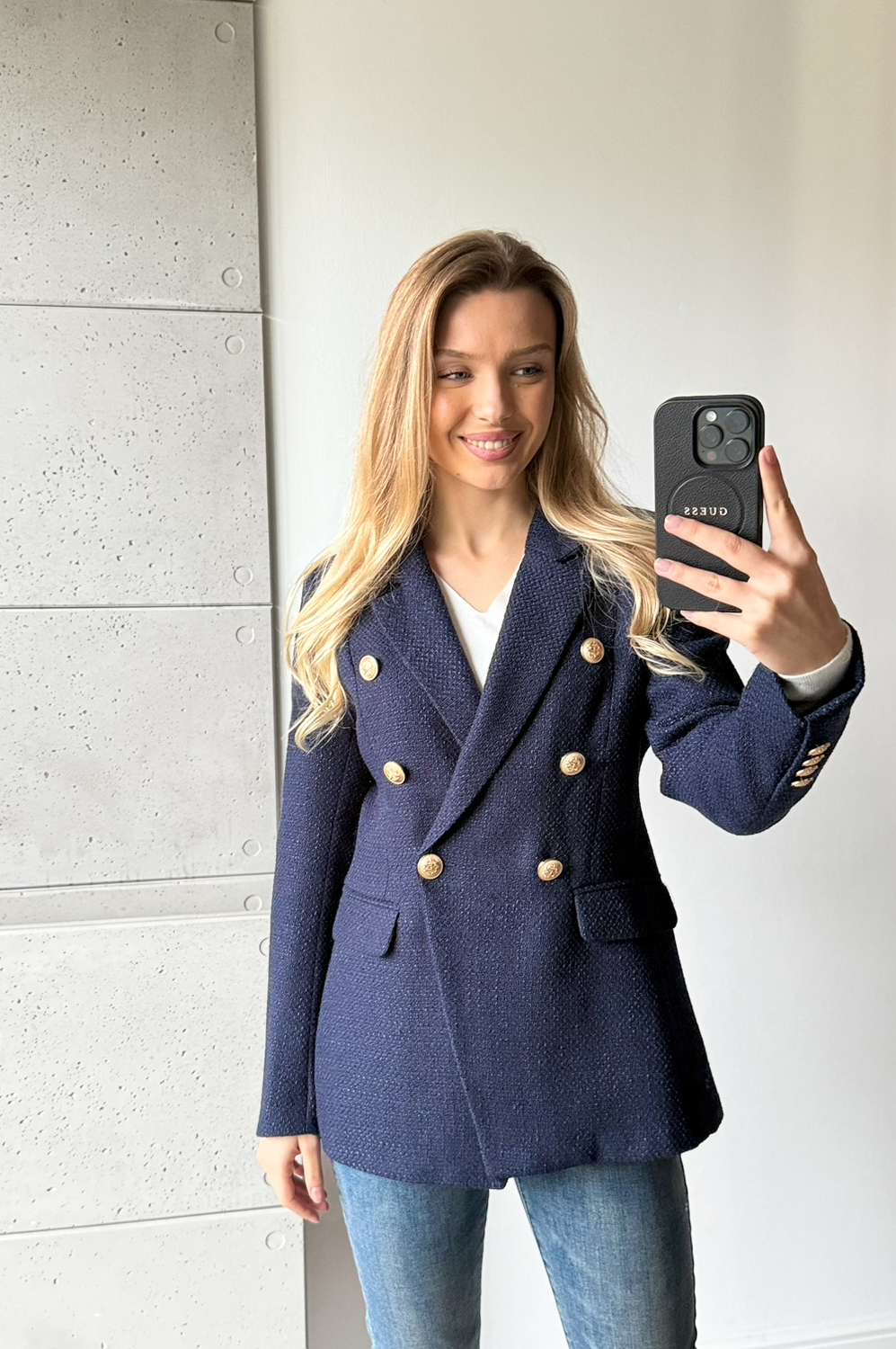 Marynarka TALIOWANA PREMIUM GOLD granat299.00 zł Najniższa cena towaru, która obowiązywała w okresie 30 dni przed zastosowaniem obniżki: 299.00 zł Opis Elegancka marynarka,zapinana na złote guziczki, taliowana, jakość PREMIUM. WYMIARY: wypada mniejsza - kupuj o rozmiar większą ZASADY KONSERWACJI: PRAĆ W 30 STOPNIACH RĘCZNIE