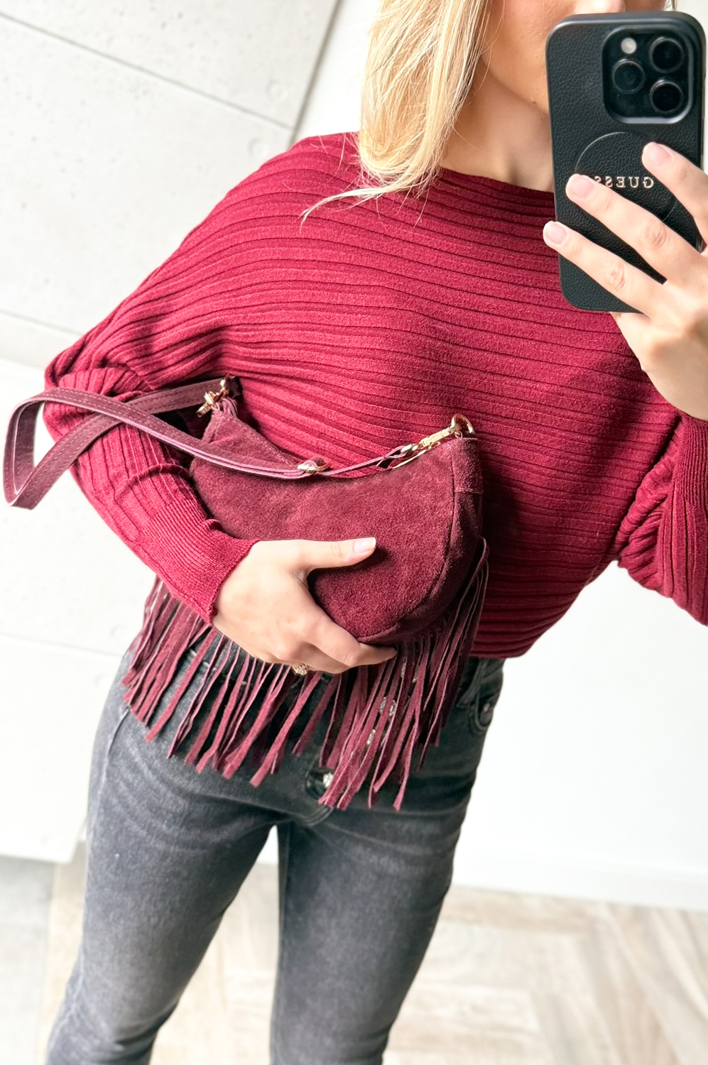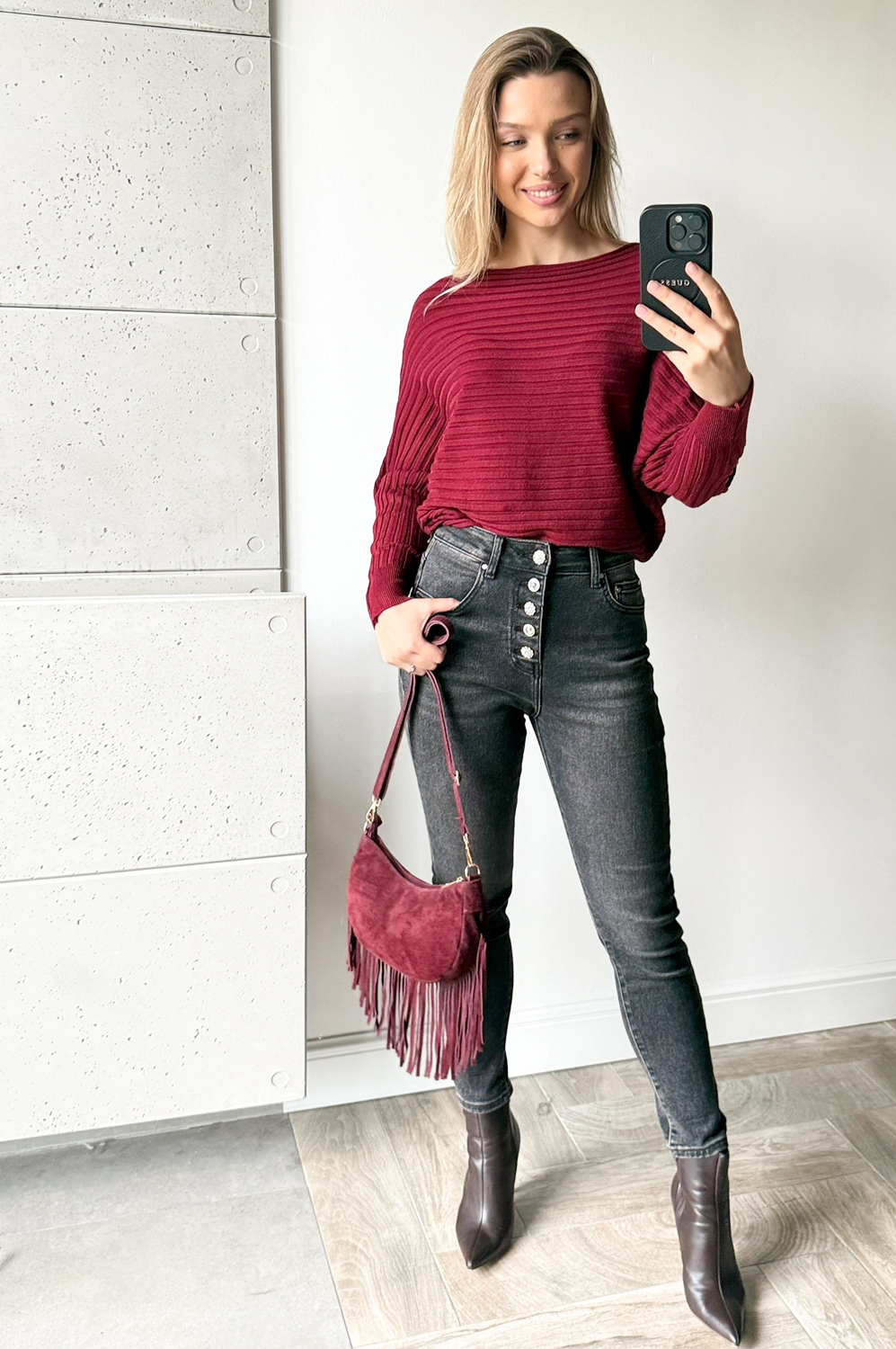 Sweterek KIMONO PRĄŻEK czerwone wino139.00 zł Najniższa cena towaru, która obowiązywała w okresie 30 dni przed zastosowaniem obniżki: 139.00 zł Opis Sweterek o luźnym kroju-kimono, wykonany z przemiłej w dotyku, miękkiej dzianiny sweterkowej,prążkowanej. ZASADY KONSERWACJI : PRAĆ W TEMPERATURZE 30 stopni.