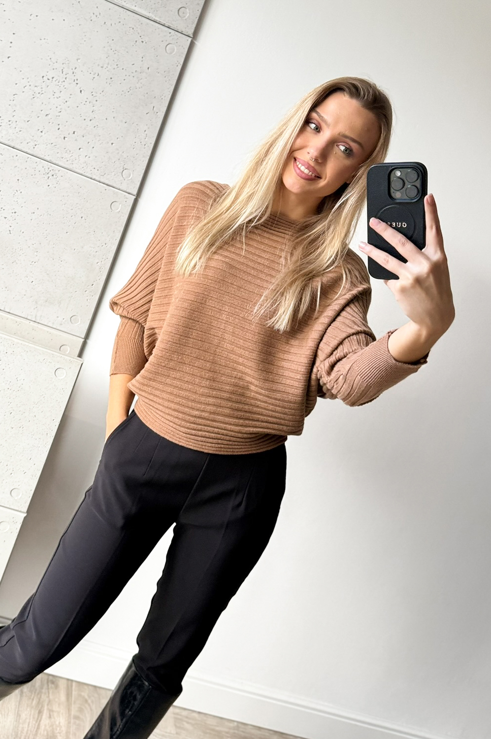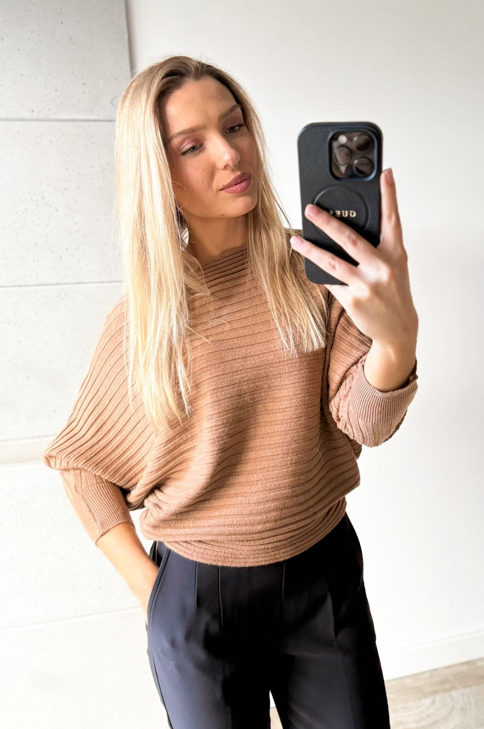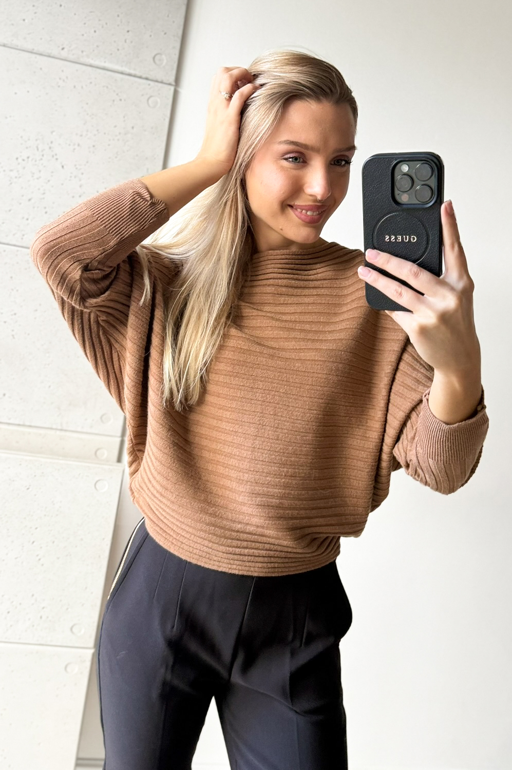 Sweterek KIMONO PRĄŻEK koniak139.00 zł Najniższa cena towaru, która obowiązywała w okresie 30 dni przed zastosowaniem obniżki: 139.00 zł Opis Sweterek o luźnym kroju-kimono, wykonany z przemiłej w dotyku, miękkiej dzianiny sweterkowej,prążkowanej. ZASADY KONSERWACJI : PRAĆ W TEMPERATURZE 30 stopni.