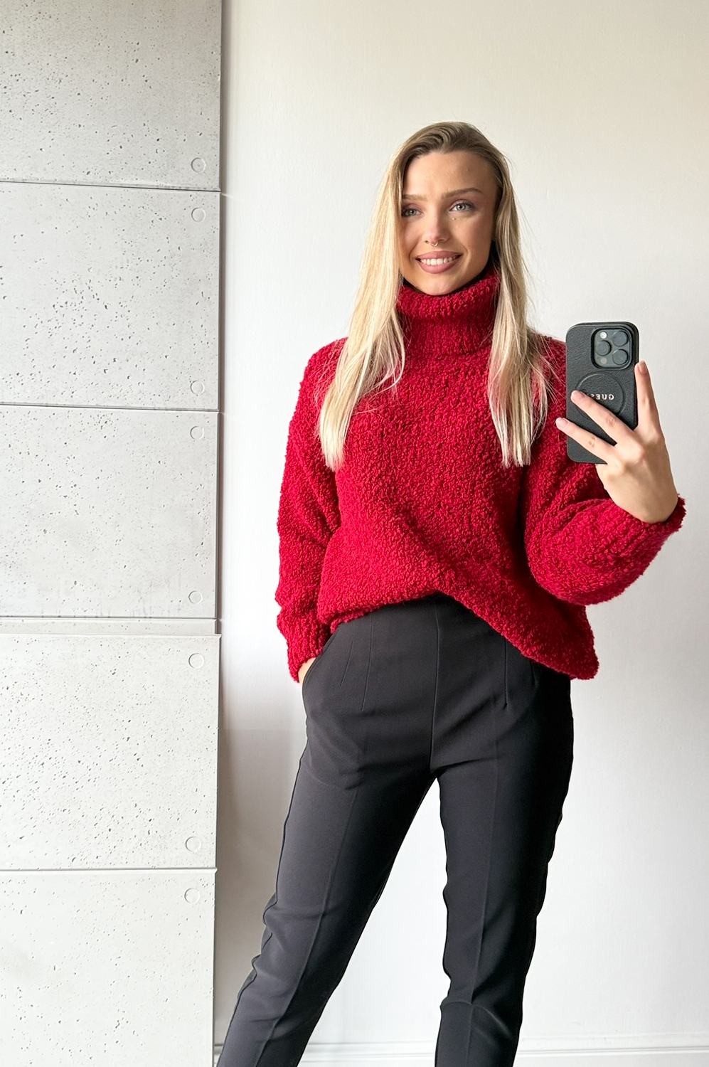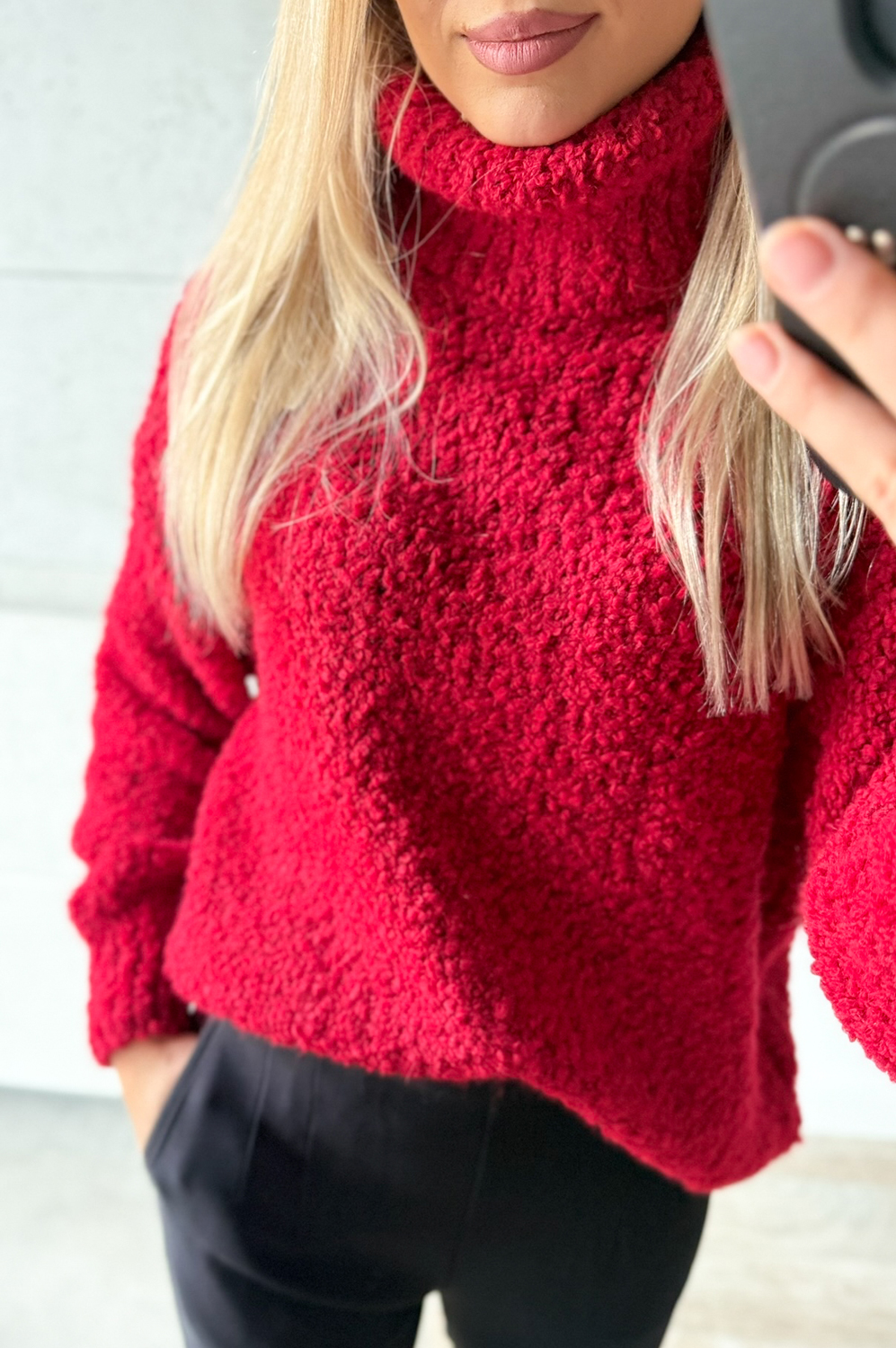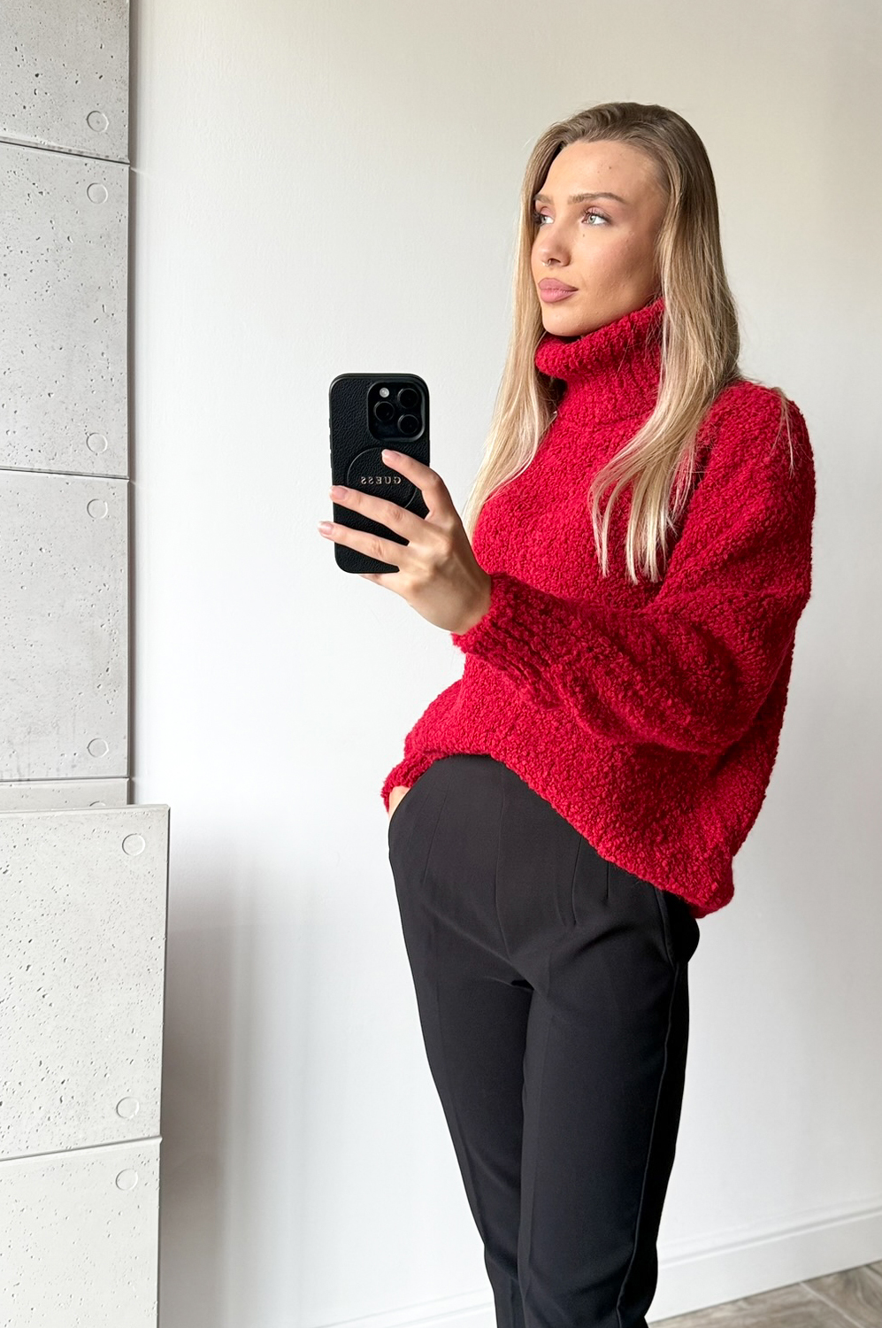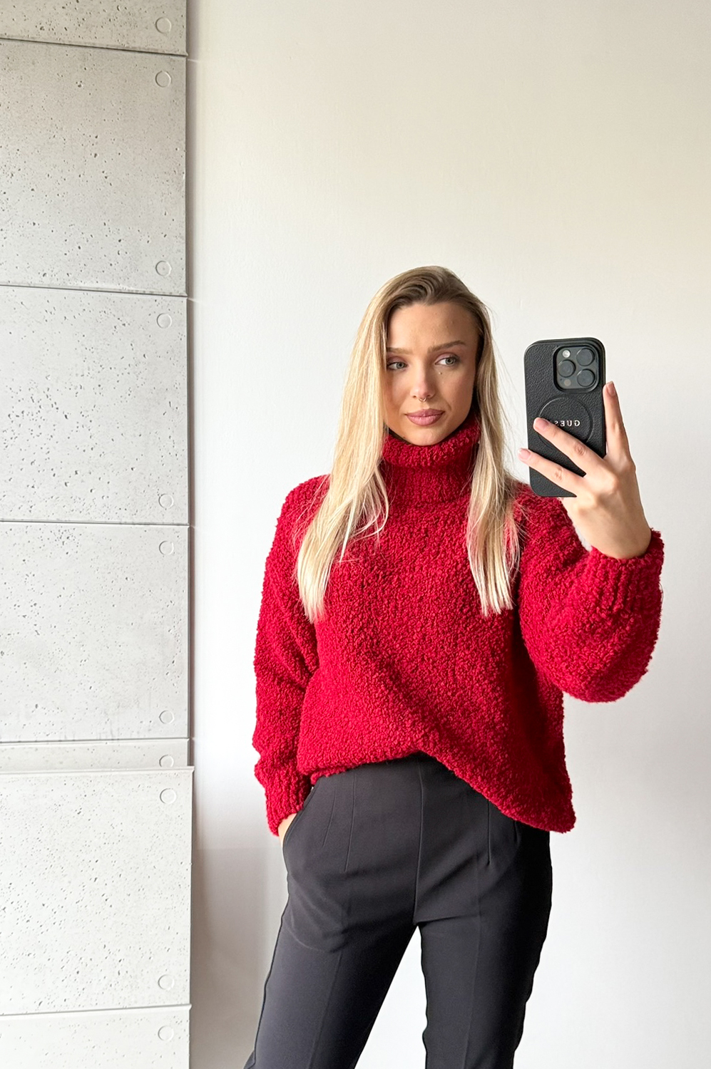 Sweterek GOLF BOUCLE czerwony179.00 zł Najniższa cena towaru, która obowiązywała w okresie 30 dni przed zastosowaniem obniżki: 179.00 zł Opis Zwrot ZWROTY