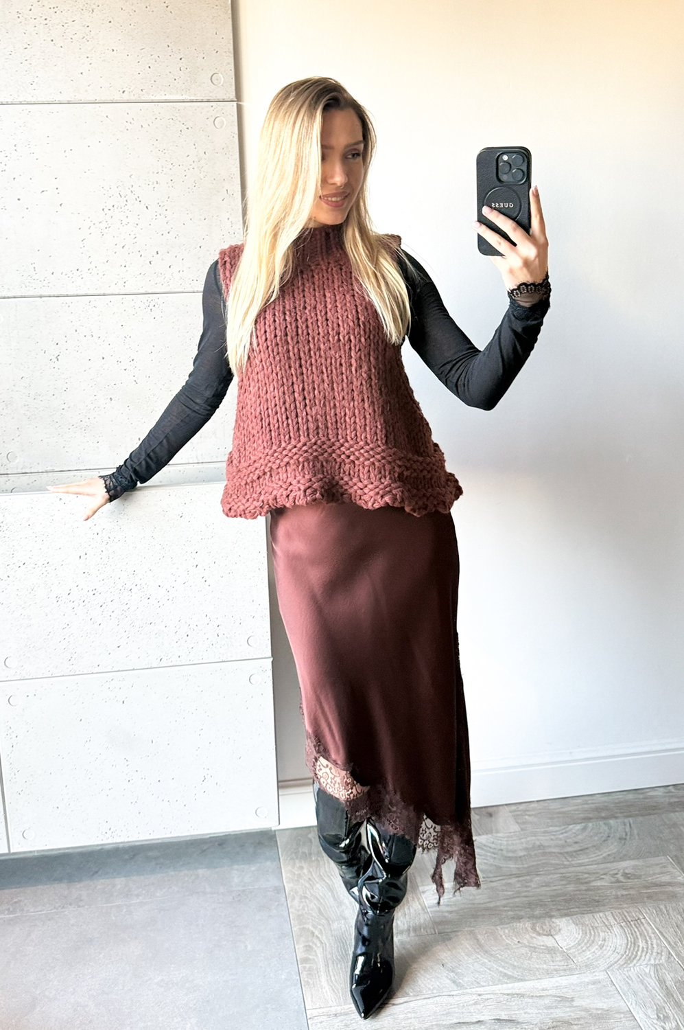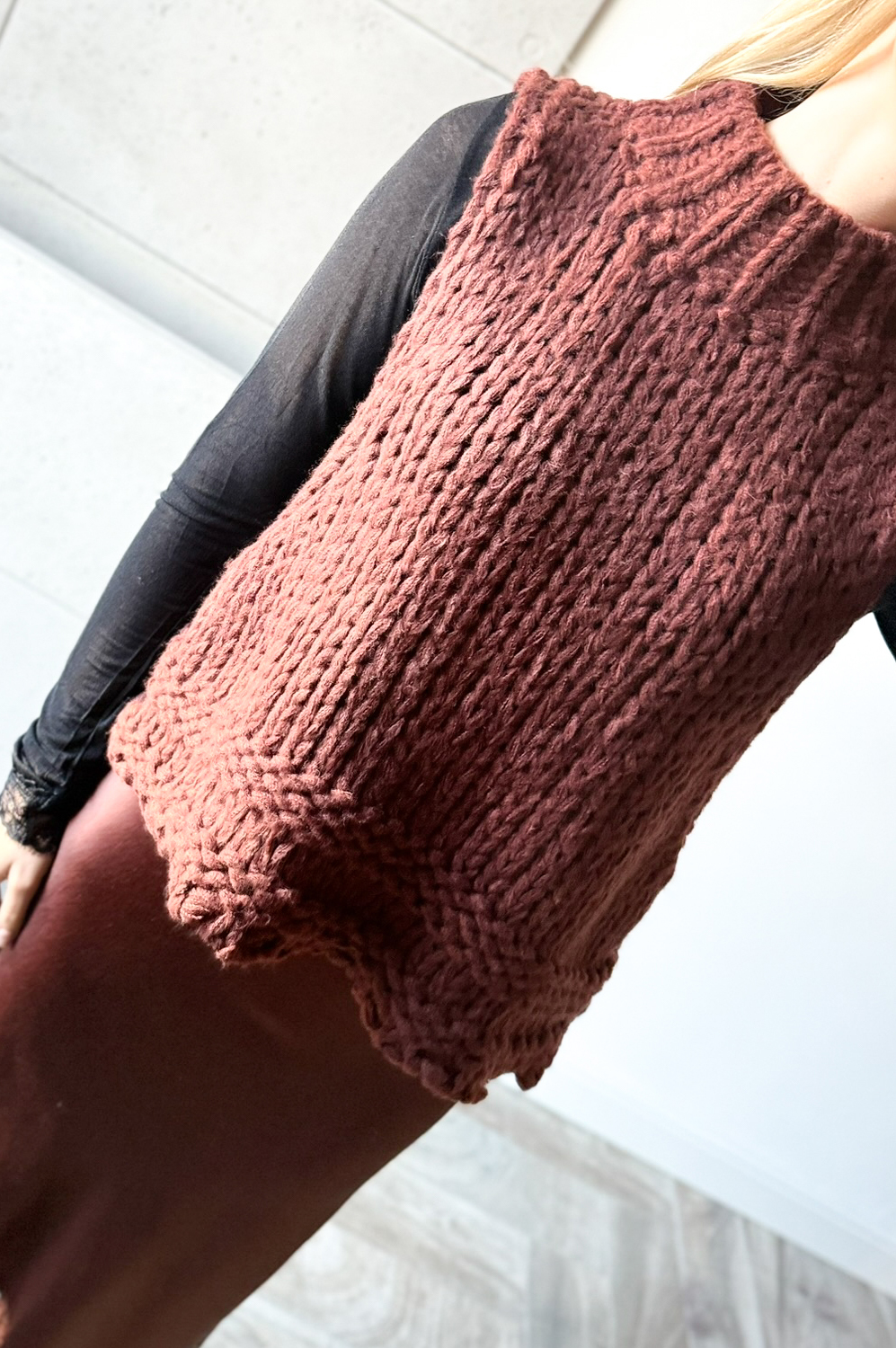 Kamizelka NA DRUTACH cynamon159.00 zł Najniższa cena towaru, która obowiązywała w okresie 30 dni przed zastosowaniem obniżki: 159.00 zł Opis Zwrot ZWROTY