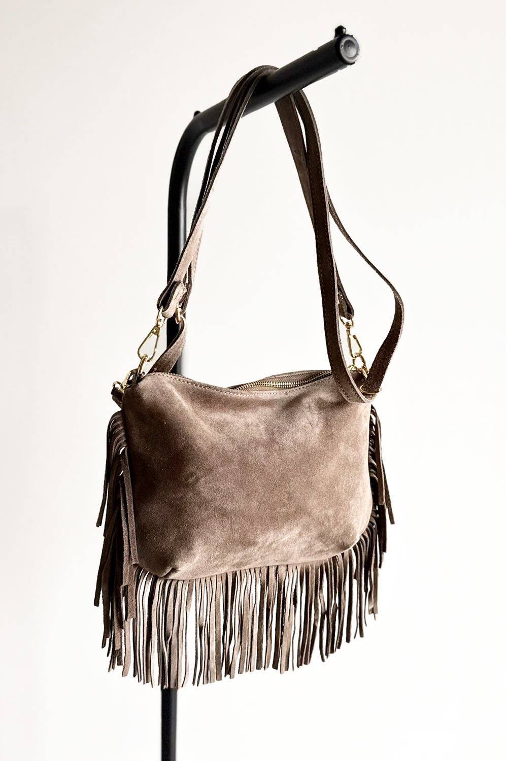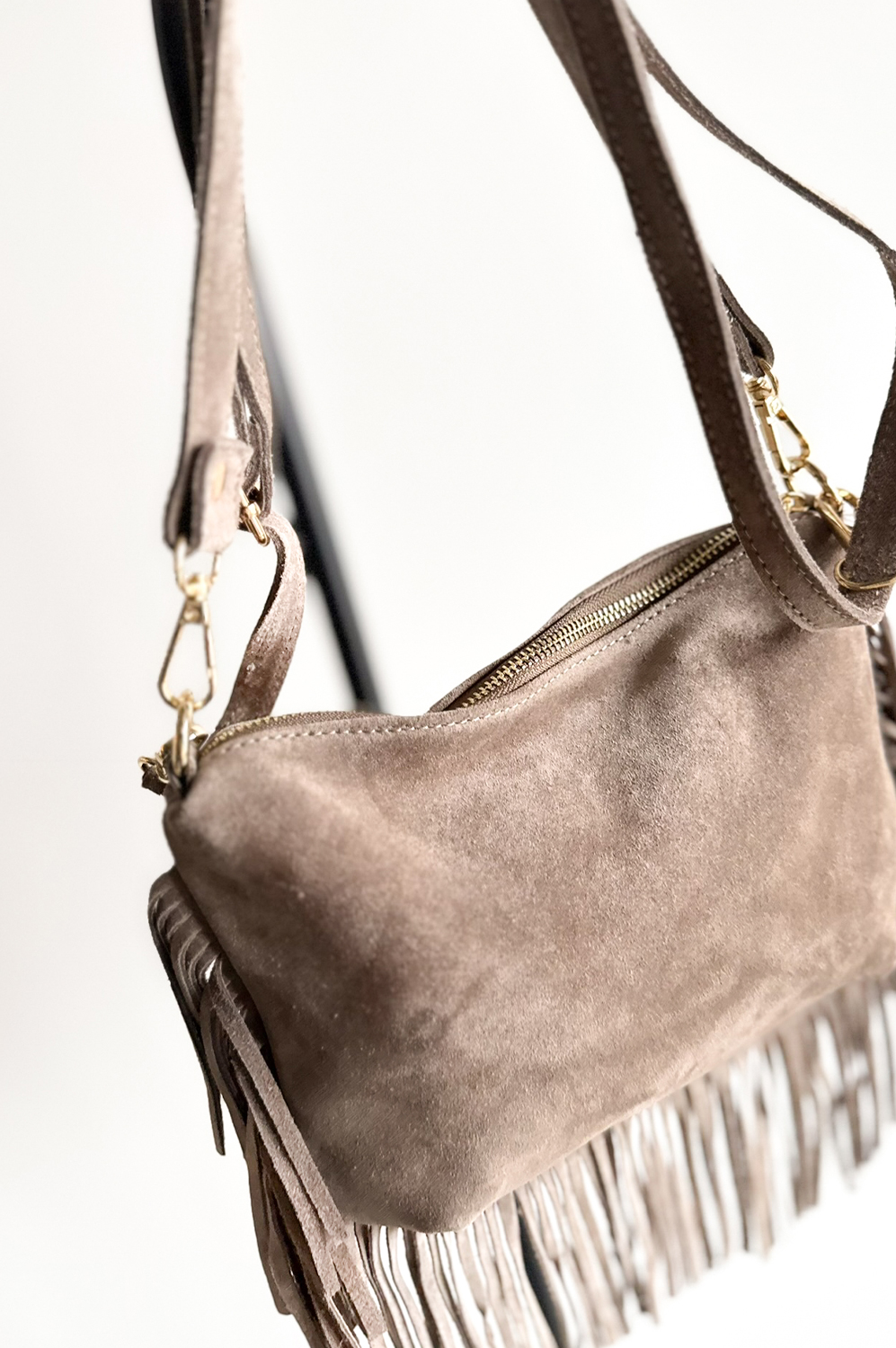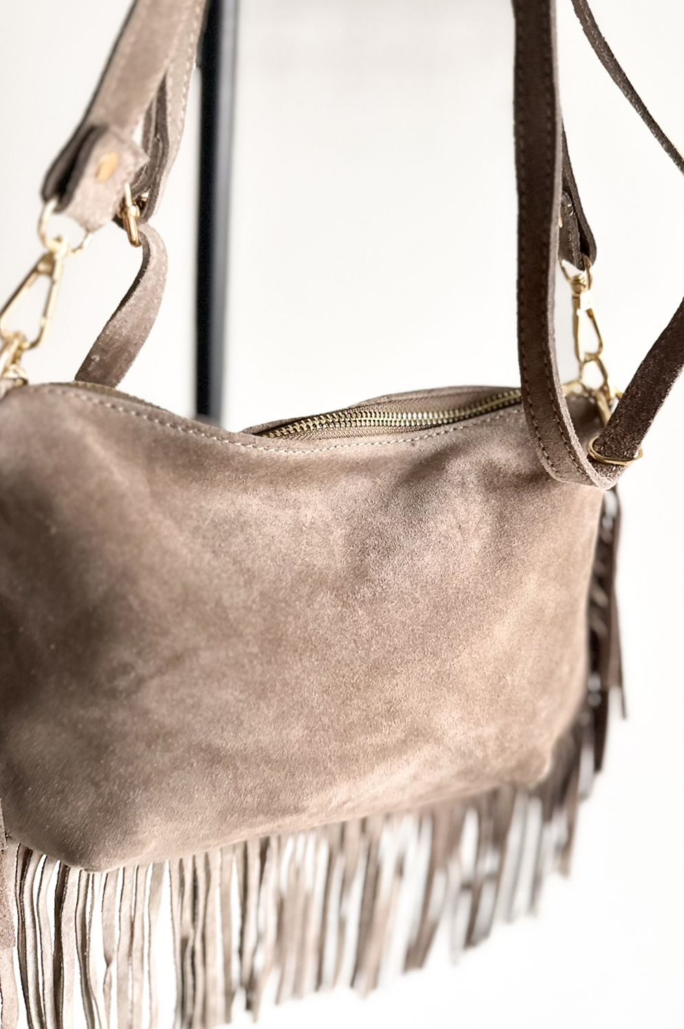 Torebka ZAMSZ FRĘDZLE fango149.00 zł Najniższa cena towaru, która obowiązywała w okresie 30 dni przed zastosowaniem obniżki: 149.00 zł Opis TOREBKA WYKONANA ZE SKÓRY NATURALNEJ. Pasek regulowany. WYMIARY: