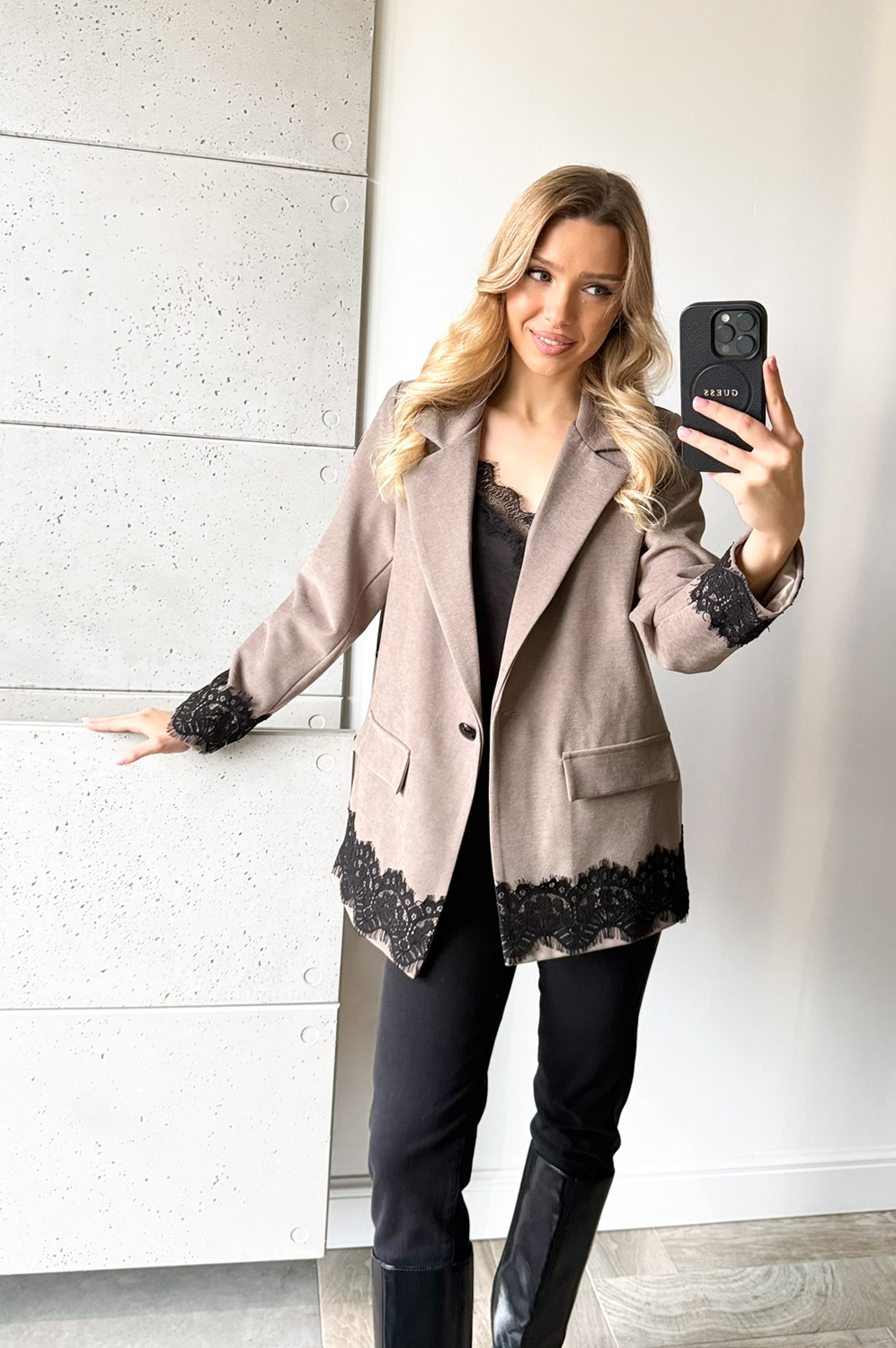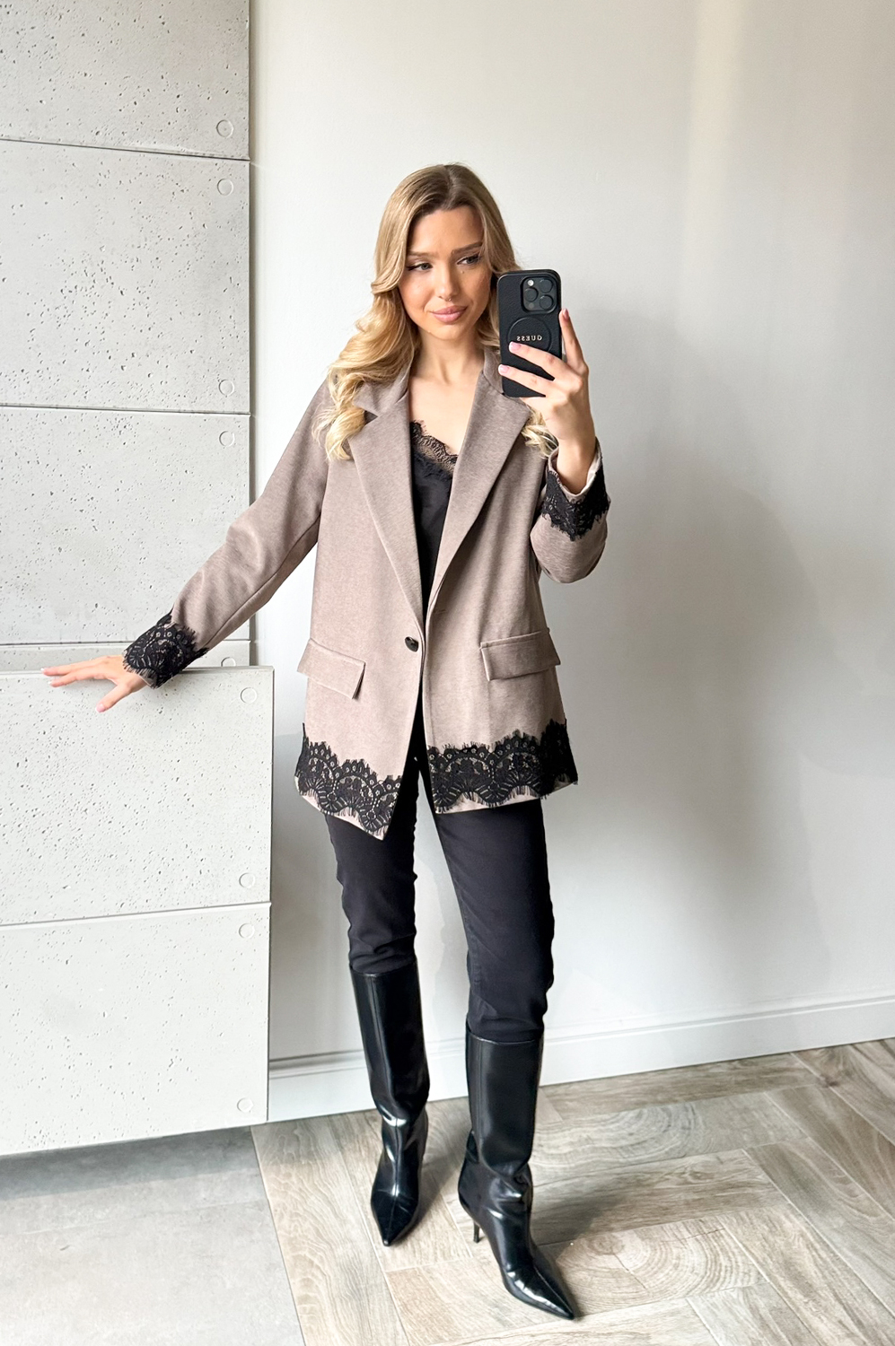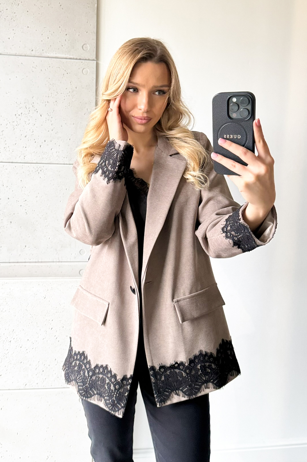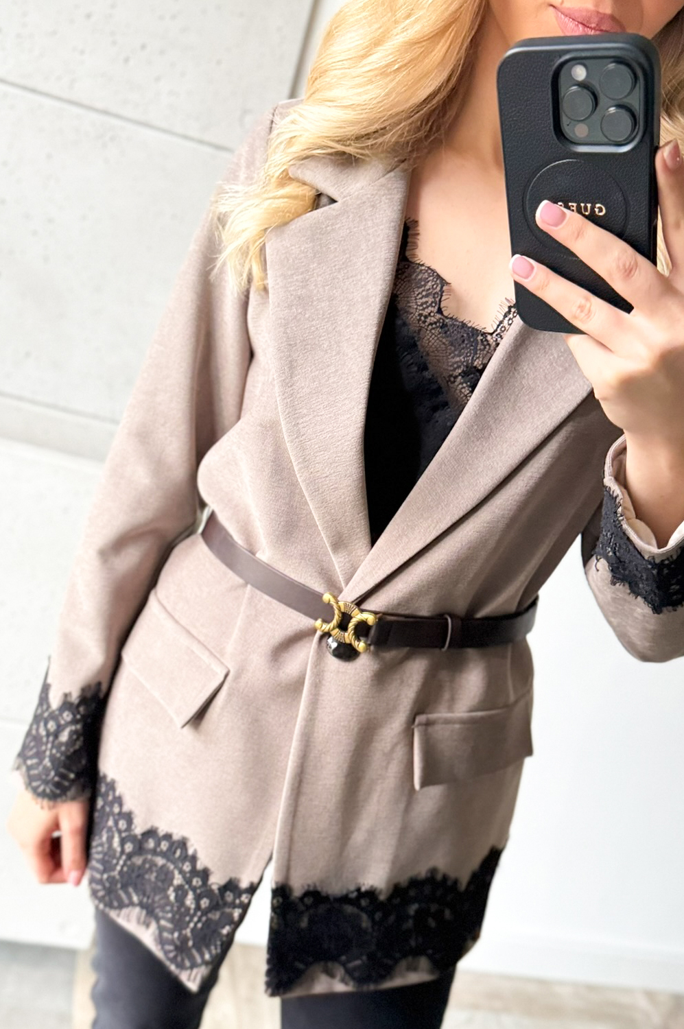 Marynarka FANGO Z KORONKĄ I PASKIEM249.00 zł Najniższa cena towaru, która obowiązywała w okresie 30 dni przed zastosowaniem obniżki: 249.00 zł Opis Zwrot ZWROTY