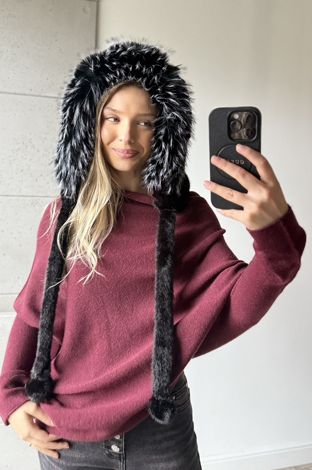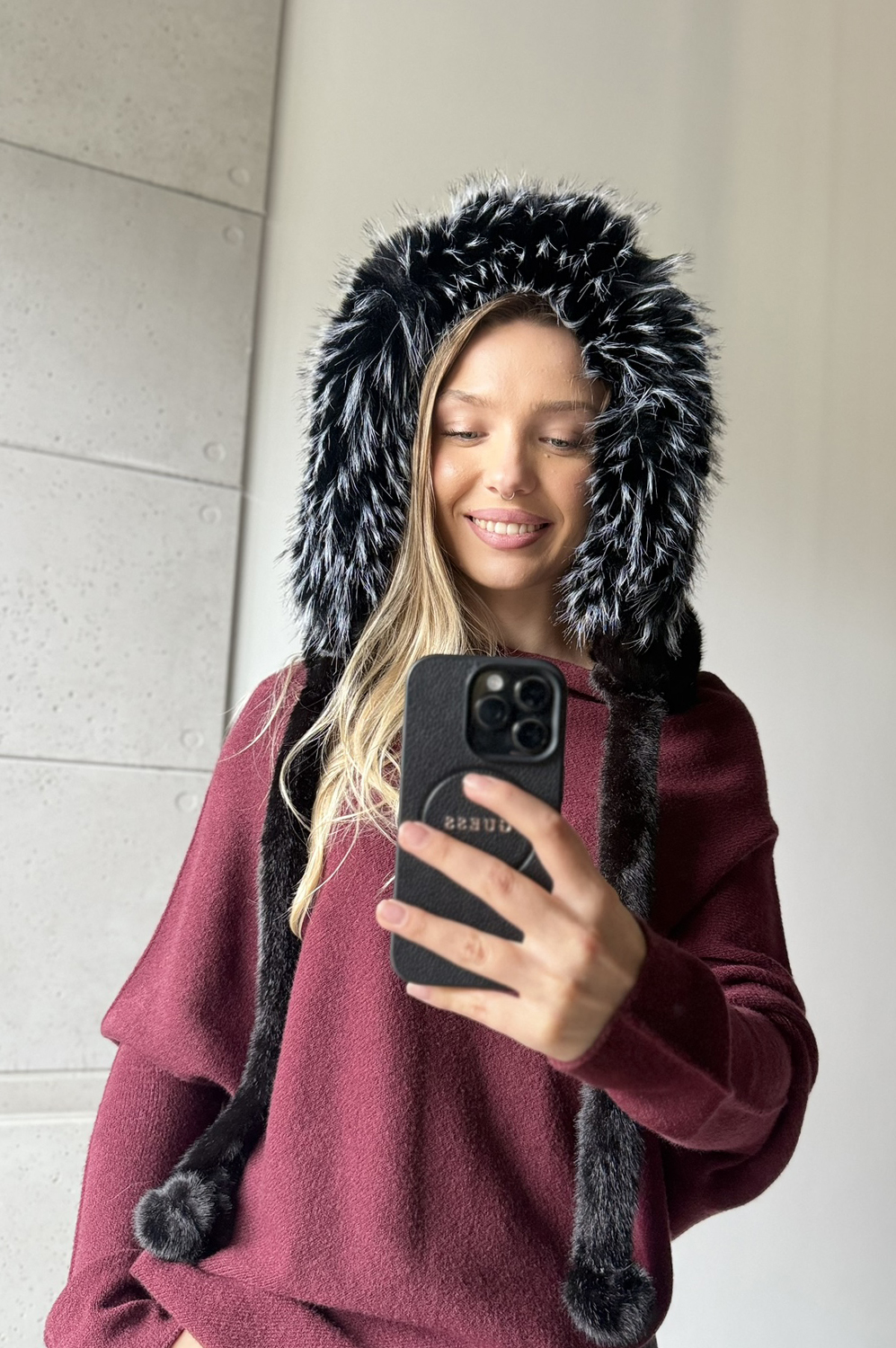 * CZAPKA - KAPTUR Z FUTERKA czarna129.00 zł Najniższa cena towaru, która obowiązywała w okresie 30 dni przed zastosowaniem obniżki: 129.00 zł Opis Zwrot ZWROTY