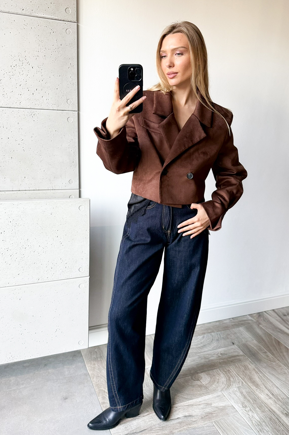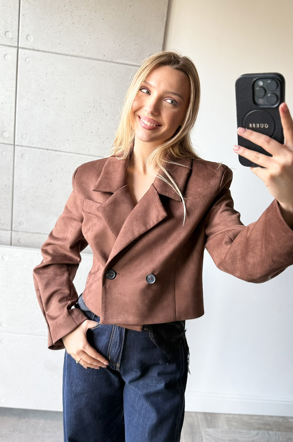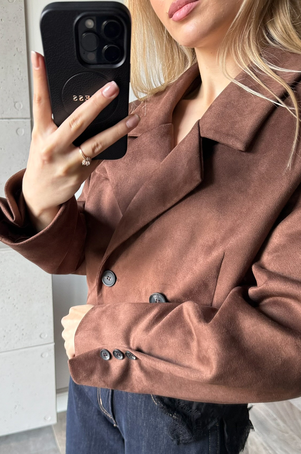 Marynarka - kurtka ZAMSZOWA MILARGO cynamon319.00 zł Najniższa cena towaru, która obowiązywała w okresie 30 dni przed zastosowaniem obniżki: 319.00 zł Opis Marynarka - kurtka łączy w sobie efektowny, nowoczesny krój z eleganckim wykończeniem, tworząc idealny wybór na wyjątkowe okazje. Jej luźna forma dodaje swobody, jednocześnie zachowując elegancję i ponadczasowy styl. Wukonana z dzianiny zamszowej na podszewce.
