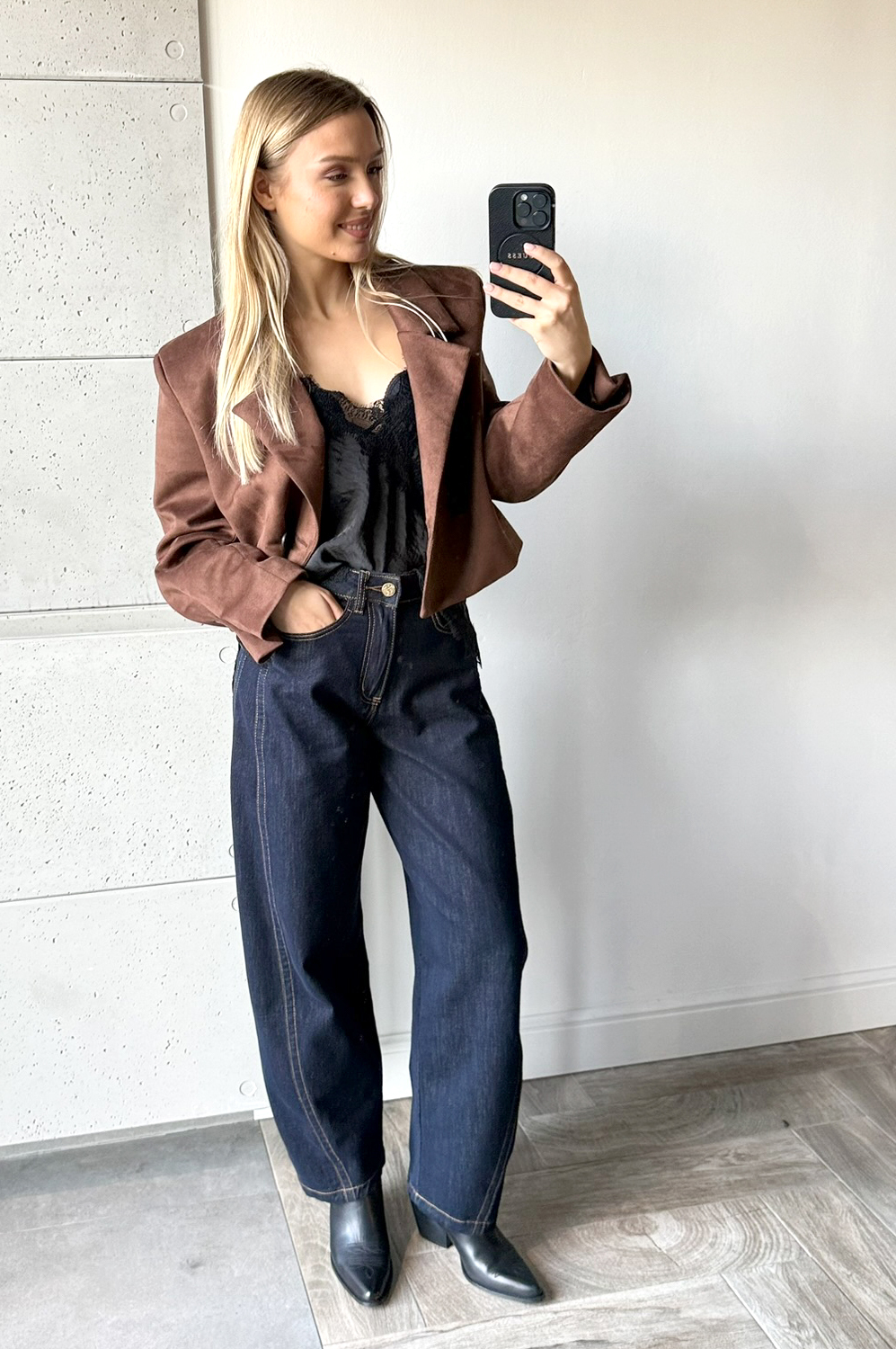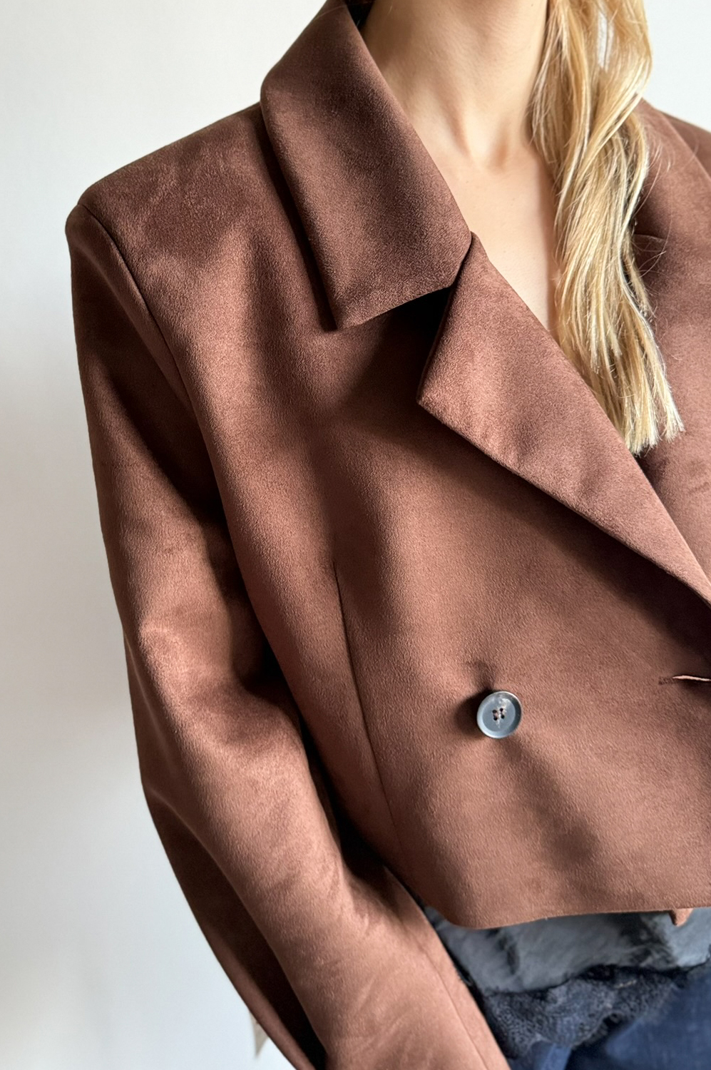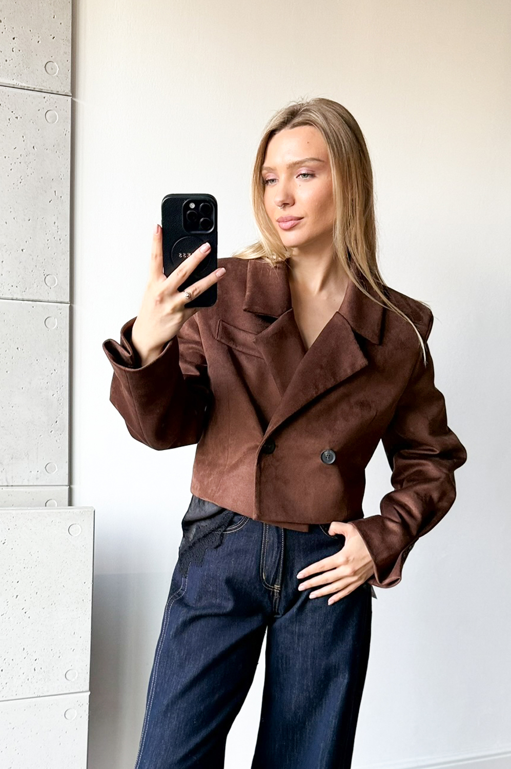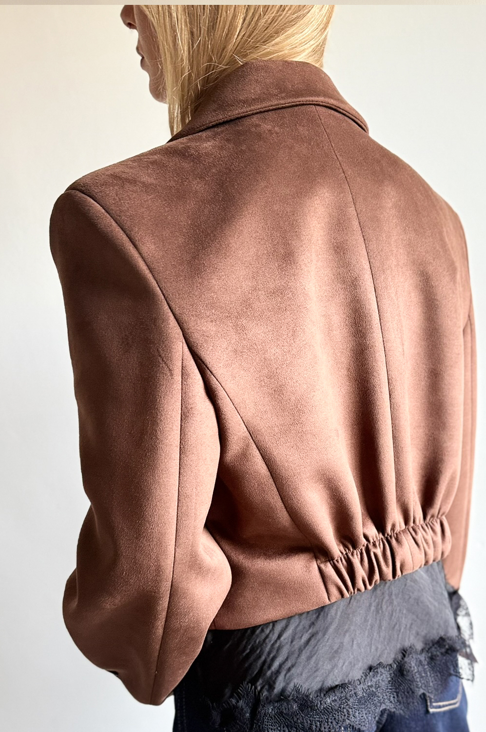 Marynarka - kurtka ZAMSZOWA MILARGO cynamon319.00 zł Najniższa cena towaru, która obowiązywała w okresie 30 dni przed zastosowaniem obniżki: 319.00 zł Opis Marynarka - kurtka łączy w sobie efektowny, nowoczesny krój z eleganckim wykończeniem, tworząc idealny wybór na wyjątkowe okazje. Jej luźna forma dodaje swobody, jednocześnie zachowując elegancję i ponadczasowy styl. Wukonana z dzianiny zamszowej na podszewce.